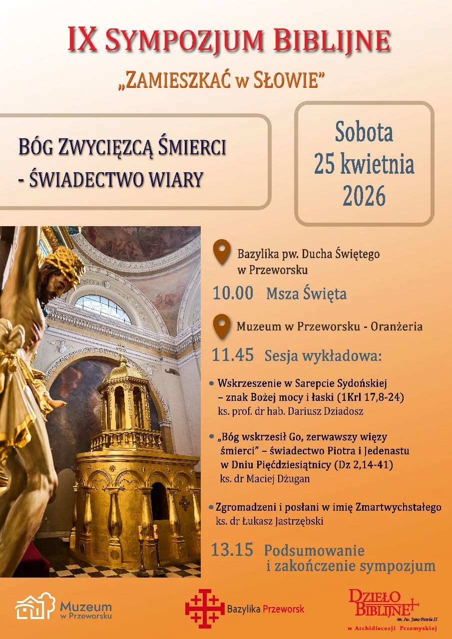 Dzieło Biblijne im. św. Jana Pawła II, Przeworska Kapituła Kolegiacka oraz Muzeum w Przeworsku, serdecznie zapraszają na IX sympozjum biblijne „Zamieszkać w Słowie” . W tym roku poświęcone jest ono tematowi: Bóg Zwycięzcą Śmierci – świadectwo wiary.
